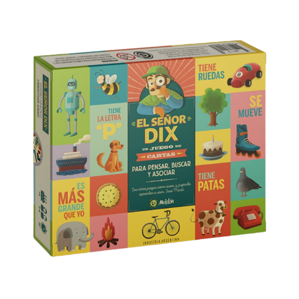 EL SEÑOR DIX es un juego de cartas que invita pensar y asociar. Tiene dos mazos: uno de dibujos y otro de cualidades. Para jugar con chicos a partir de 4 años, y con distintos niveles de dificultad, se deberán asociar los dibujos con una o más características para ir acumulando cartas y ganar el juego.
