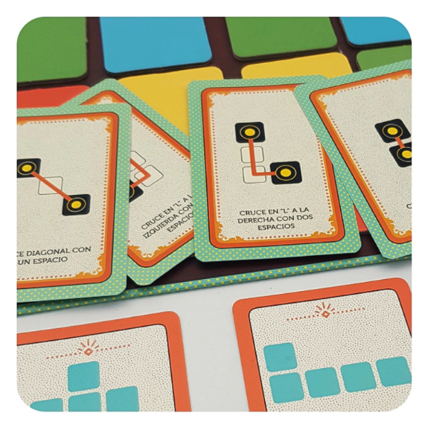 Es un juego de mesa de estrategia e ingenio, en el que los jugadores deberán formar figuras determinadas, moviendo las fichas en el tablero, según las tarjetas de movimiento. Cada jugador tendrá un mazo con figuras para ir descartando a medida que se formen en el tablero, y quién primero lo termine será el ganador.